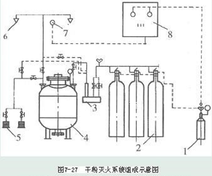 (3)当防护区或保护对象有可燃气体,易燃、可燃液体供应源时,启动干粉灭火系统之前或同时,必须切断气体、液体的供应源。