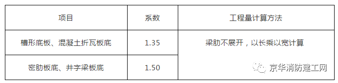 1.池槽保温隔热、池底保温隔热按地面保温隔热项目执行,人工费乘以系数1.2;池壁保温隔热按墙面保温隔热项目执行,人工费乘以系数1.2 2.防腐工程 ①各种面层均不包括踢脚线,除聚氯乙烯塑料地面外,其他整体面层踢脚线,按整体面层相应项目计算,其人工乘以系数1.6;块料面层踢脚线,按块料面层相应项目计算,其人工乘以系数1.56,若遇做法与本分部定额不同时,按2015年《四川省建设工程工程量清单计价定额——房屋建筑与装饰工程》册相应项目执行 ②块料面层以平面砌块料面层为准,立面砌块料面层,执行平面砌块料面层相应项目,其人工乘以系数1.38 楼地面 1.彩色水磨石楼地面嵌条分色以四边形分格为准,如采用多边形或美术图案者,人工乘以系数1.2 2.螺旋形楼梯装饰面执行相应楼梯项目,乘以系数1.15 墙柱面工程 1.抹灰:圆弧形、锯齿形、不规则形墙柱面抹灰,按相应项目人工乘以系数1.15 2.镶贴块料 ①圆弧形、锯齿形和其他不规则的墙柱面镶贴块料面层时,人工乘以系数1.15 ②仿石砖按面砖定额执行,人工乘以系数1.20 ③带美术图案的陶瓷艺术砖按面砖定额执行,人工乘以系数1.20 ④墙柱(梁)饰面 :墙、柱面装饰面层,如果用两种及以上材料构成,执行拼色拼图案项目,人工乘以系数1.30,材料乘以系数1.10 ⑤柱、梁面及零星项目干挂石材的钢骨架按墙面干挂石材钢骨架项目执行,人工乘以系数1.1 天棚工程 1.天棚面层在同一标高者为平面天棚,天棚面层不在同一标高者为跌级天棚。跌级造型天棚,其面层安装人工费乘以系数1.20 2.槽形板底、混凝土折瓦板、密肋板底、井字梁板底抹灰工程量按下表规定乘以系数计算: 3.阳台底面抹灰按设计图示尺寸以水平投影面积计算,并入相应天棚抹灰面积内。阳台如带悬臂梁者,其工程量乘以系数1.30 4.雨篷底面抹灰按设计图示尺寸以水平投影面积计算,并入相应天棚抹灰面积内。雨篷如带悬臂梁者,其工程量乘以系数1.20 油漆、涂料、裱糊工程 1.定额中的单层木门刷油是按双面刷油考虑的。如采用单面刷油,其定额含量乘以系数0.49计算 2.木楼梯(不包括底面)油漆,按水平投影面积乘以系数2.3,执行木地板油漆相应子目 其它工程 1.招牌的面层套用天棚相应面层项目,其人工费乘以系数0.8 2.压条、装饰条: ①如在天棚面上钉直形装饰条者,其人工乘以系数1.34;钉弧形装饰条者,其人工乘以系数1.6,材料乘以系数1.1 ②墙面安装弧形装饰线条者,人工乘以系数1.2,材料乘以系数1.1 ③装饰线条做图案者,人工乘以系数1.8,材料乘以系数1.1 拆除工程 1.楼梯表面块料拆除按楼地面块料拆除项目执行,人工乘以系数1.4 2.混凝土梁、板、柱单个构件的局部拆除按相应定额项目乘以系数1.25 措施项目 1.综合脚手架已综合考虑了砌筑、浇筑、吊装、抹灰、油漆、涂料等脚手架费用。满堂基础(独立柱基或设备基础投影面积超过20m2)按满堂脚手架基本层费用乘以50%计取,当使用泵送混凝土时则按满堂脚手架基本层乘以40%计取。外墙装饰(以单项脚手架计取脚手架摊销费除外)按外脚手架项目乘以系数40%计算 2.坡屋面模板按相应定额项目执行,人工乘以系数1.1 3.别墅(独立别墅、连排别墅)各模板按相应定额项目执行,材料用量乘以系数1.2 4.后浇带模板按相应构件模板项目综合单价乘以系数2.5,包含后浇带模板、支架的保留,重新搭设、恢复、清理等费用 5.现浇混凝土L、Y、T、Z、十字形等短墙单肢中心线长度≤0.4m的,其模板按异形柱项目执行;现浇混凝土L、Y、T、Z、十字形等短墙单肢中心线长度≤0.8m的,其模板按墙定额执行,定额乘以系数1.4;现浇混凝土一字形短墙中心线长度>0.4m且≤1m的,其模板按墙的定额项目执行,定额乘以系数1.2;现浇混凝土一字形短墙中心线长度≤0.4m的,其模板按矩形柱定额项目执行 6.有梁板模板定额项目已综合考虑了有梁板中弧形梁的情况,梁和板应作为整体套用。弧形梁模板为独立弧形梁模板。圈梁、基础梁的弧形部分模板按相应圈梁、基础梁模板套用定额乘以系数1.2计算(异形柱) 7.大型机械设备进出场及安拆 :拖式铲运机的进场费按相应规格的履带式推土机乘以系数1.1 8.塔式起重机轨道式基础包括铺设和拆除的费用,轨道铺设以直线为准,如铺设为弧线时,弧线部分定额人工、机械乘以系数1.15 9.现浇钢筋混凝土楼梯,以图示露明尺寸的水平投影面积计算,不扣除小于500mm楼梯井所占面积。楼梯的踏步、踏步板平台梁等侧面模板,不另计算。阶梯形(锯齿形)现浇楼板每一梯步宽度大于300mm时,模板工程按板的相应项目执行,综合单价乘以系数1.65 10.二次装饰装修工程按超过部分的定额综合单价(基价)乘以系数