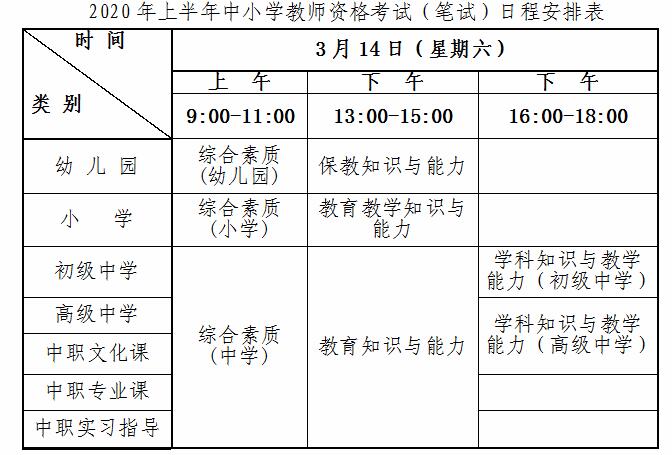 据教育部考试中心《关于2020年中小学教师资格考试考务相关事项的通知》(教试中心函〔2019〕179号)文件安排,我省2020年上半年中小学教师资格考试笔试时间为3月14日。现就笔试考试报名安排公告如下: