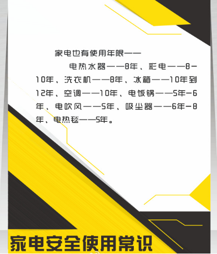 一、注意家电使用年限——每个家庭电器都有属于自己的使用年限,若某一电器超过使用年限,那么引起火灾的几率也会大大上升,对照一下图片,看看你家的家用电器“过期”了吗?