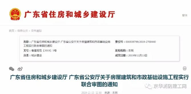 广东省住房和城乡建设厅 广东省公安厅 关于房屋建筑和市政基础设施工程实行联合审图的通知 各地级以上市住房城乡建设部门、公安局: 为全面贯彻习近平总书记关于改善营商环境的重要指示精神和党中央、国务院的决策部署,按照《国务院办公厅关于全面开展工程建设项目审批制度改革的实施意见》(国办发〔2019〕11号)、《广东省人民政府关于印发广东省全面开展工程建设项目审批制度改革实施方案的通知》(粤府〔2019〕49号)、《广东省深化营商环境综合改革行动方案》(粤办发〔2018〕27号)以及机构职责调整的工作要求,现就将房屋建筑和市政基础设施工程实行联合审图的有关事项通知如下: 二、主要工作 (一)全面实行联合审图。将房屋建筑和市政基础设施工程的消防、人防、技防等技术审查整合并入施工图设计文件审查,由房屋建筑和市政基础设施工程施工图审查机构(简称审查机构),依法对施工图设计文件中涉及公共利益、公众安全、工程建设强制性标准的内容进行审查 。 三、做好工作衔接 (一)县级以上人民政府住房城乡建设主管部门、公安机关按照国家、省工程建设项目审批改革和本通知要求,将联合审图融入本地区工程建设项目审批流程,制定办事指南,做到“一份办事指南,一张申请表单,一套申报材料,完成多项审批”。 (二)自本通知施行之日起,消防、人防、技防等技术审查并入施工图设计文件审查管理。 (三)本通知施行之日前,已受理的房屋建筑和市政基础设施工程技防设计审查申请,相关行政审批继续按照既定审批流程办结。 (四)按照《国务院办公厅关于全面开展工程建设项目审批制度改革的实施意见》(国办发〔2019〕11号)有关要求,不再开展施工图审查的试点地区可以依托省审图系统开展施工图监管。 四、加强组织实施 (一)建立联动机制。县级以上人民政府住房城乡建设主管部门、公安机关要密切配合、加强协调,并会同消防救援、人防等部门,建立健全部门联动机制,定期召开联席会议,落实工程建设项目联合审图工作的组织协调和督促指导工作。 (二)积极宣传报道。要通过多种形式宣传报道相关工作措施和取得的成效,增进社会公众对施工图联合审查工作的了解和支持,顺利推进改革工作。 (三)发挥行业组织作用。县级以上人民政府住房城乡建设主管部门、公安机关要会同消防救援、人防等部门指导相关行业组织加强对施工图审查机构的业务指导和培训,引导施工图审查机构加强行业自律,提升从业人员素质,规范审查行为,确保审查质量,促进审查行业健康发展。 广东省住房和城乡建设厅 广东省公安厅 2019年11月13日